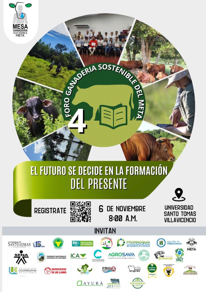 La Mesa de Ganadería Sostenible del Meta anunció la apertura de inscripciones para el 4.º Foro de Ganadería Sostenible del Meta, que se llevará a cabo el jueves 6 de noviembre a partir de las 8:00 a. m. en la Universidad Santo Tomás, sede Villavicencio.
